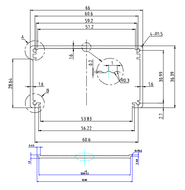 • 铝外壳定制加工BY-002 规格:66X36